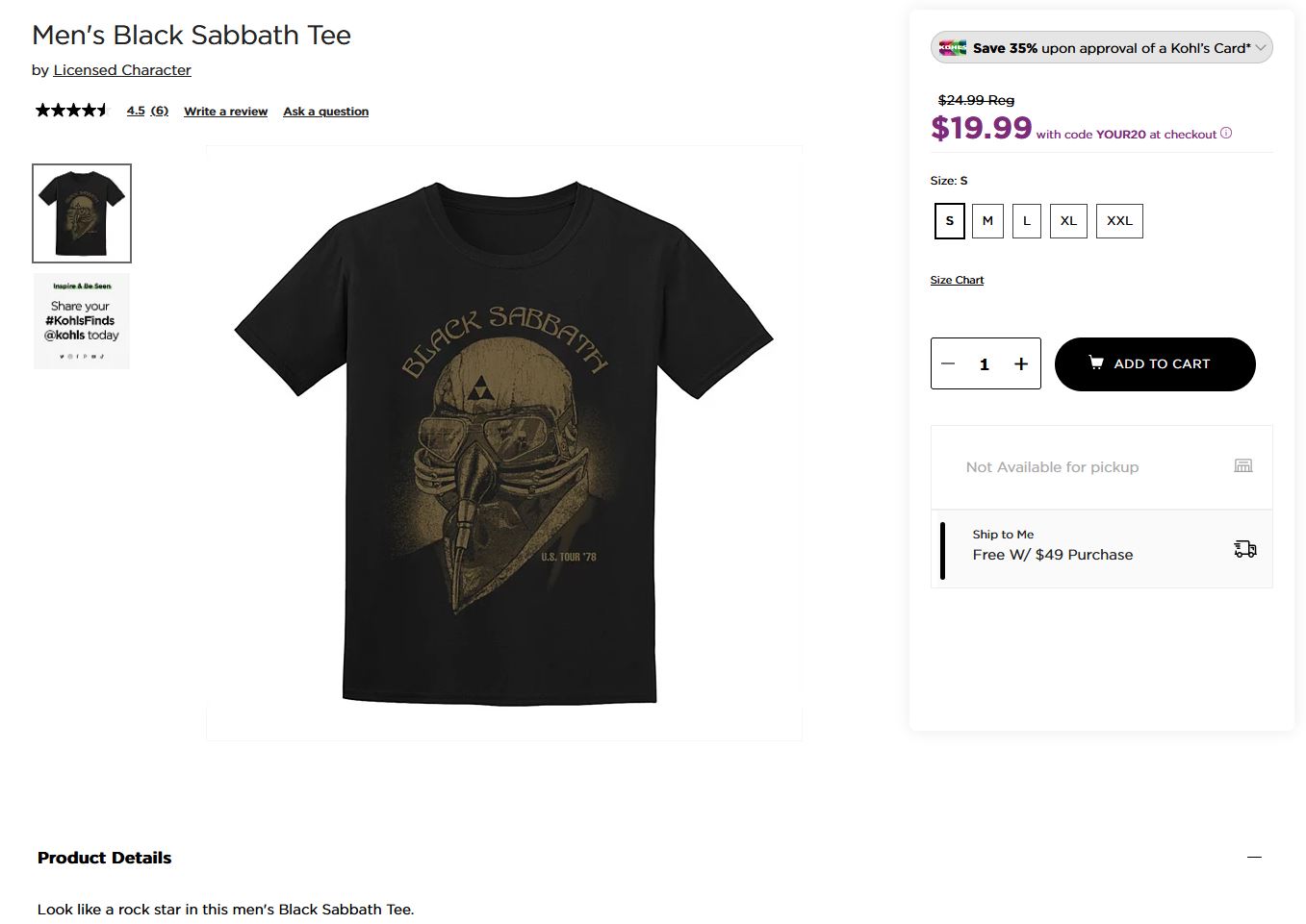 Diablo IV is a Black Sabbath t-shirt from Kohl's